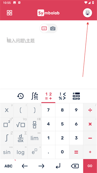 1、打開Symbolab應(yīng)用,點擊右上角的頭像圖標。