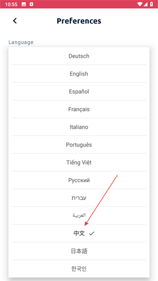 4、在語言列表中,選擇中文,即可調(diào)成中文。