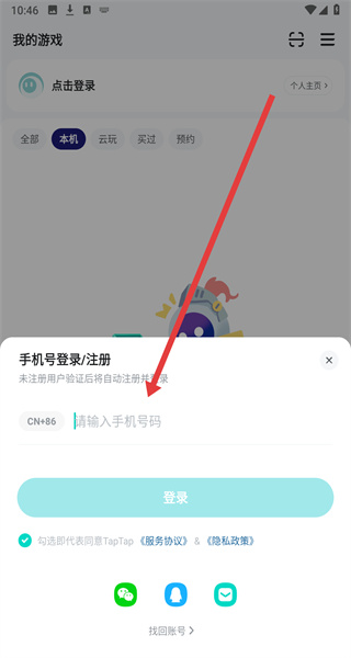 3、點(diǎn)擊下方輸入框,填寫(xiě)要登錄的手機(jī)號(hào)碼進(jìn)行登錄。