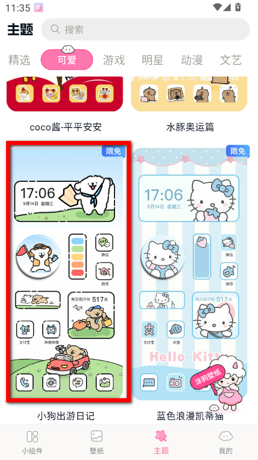 3、在可愛主題列表界面,點(diǎn)擊想要更換的主題條目,進(jìn)入主題詳情頁面。