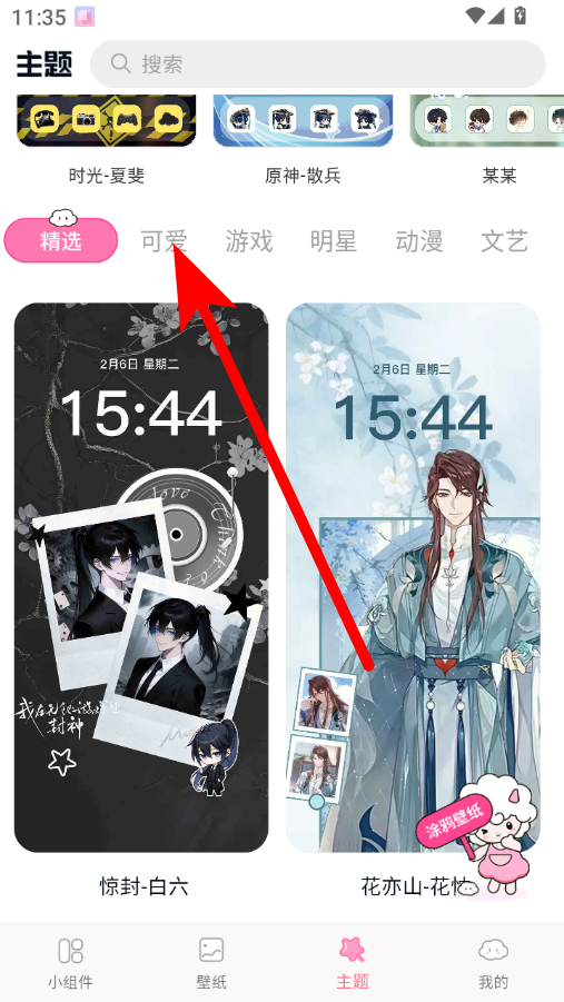 2、在主題頁面,點(diǎn)擊可愛分類,進(jìn)入可愛主題列表界面。