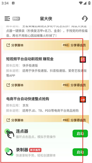 鼠大俠鼠標連點器是適用于安卓手機的自動模擬點擊連點器工具,支持模擬點擊、長按、雙擊、連點、多點點擊長按、滑動等多種手勢,自動點擊連點屏幕幫助用戶徹底解放雙手;可以通過錄制功能記錄手勢,快速生成腳本,也可通過對各個觸發(fā)點進行設置,實現較為復雜的的操作和高頻速度;支持保存腳本無限循環(huán)運行。