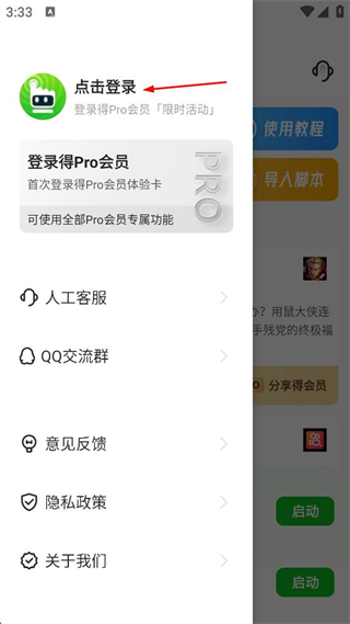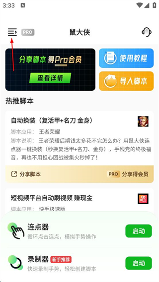 1、打開鼠大俠,點擊左上角菜單按鈕,找到點擊登錄選項。