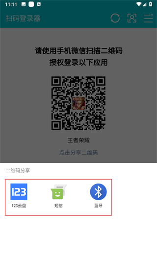 4、在可選擇123云盤(pán)、短信等方式分享二維碼。