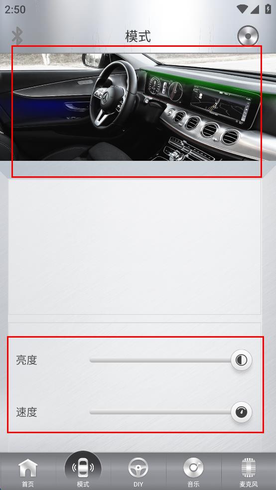 3、進(jìn)入模式頁(yè)面,調(diào)整氛圍燈亮度和速度。