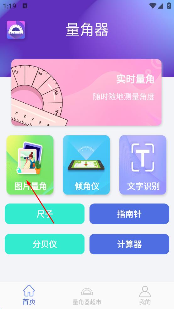 3、返回首頁(yè),點(diǎn)擊圖片量角。