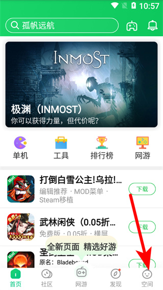 1、在葫蘆俠首頁(yè),點(diǎn)擊右下角空間選項(xiàng),進(jìn)入個(gè)人空間頁(yè)面。