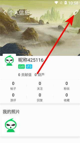 3、在個(gè)人信息頁(yè)面,點(diǎn)擊右上角編輯圖標(biāo),進(jìn)入編輯資料頁(yè)面。