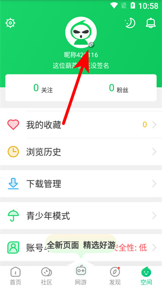 2、在個(gè)人空間頁(yè)面,點(diǎn)擊頭像區(qū)域,進(jìn)入個(gè)人信息頁(yè)面。