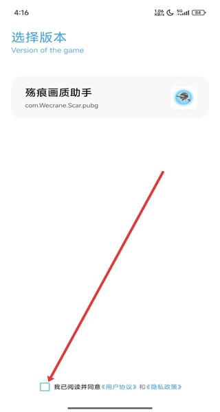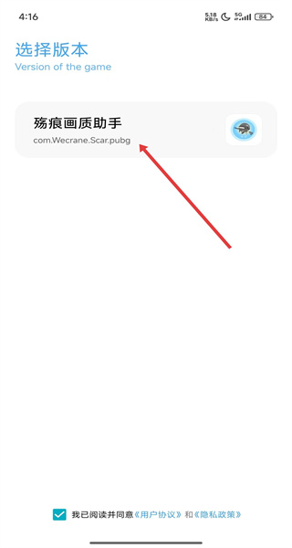 3、在勾選好同意按鈕后,可以點(diǎn)擊選擇殤痕畫(huà)質(zhì)助手版本。