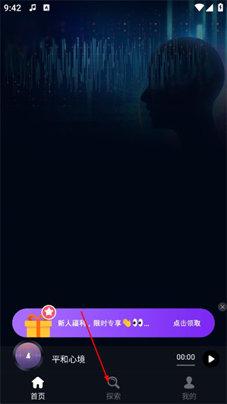 3、進(jìn)入APP后,點(diǎn)擊底部“探索”選項。