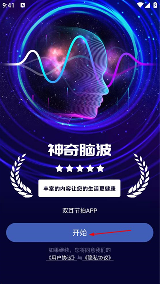 1、打開神奇腦波APP,點(diǎn)擊“開始”按鈕。