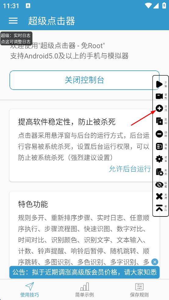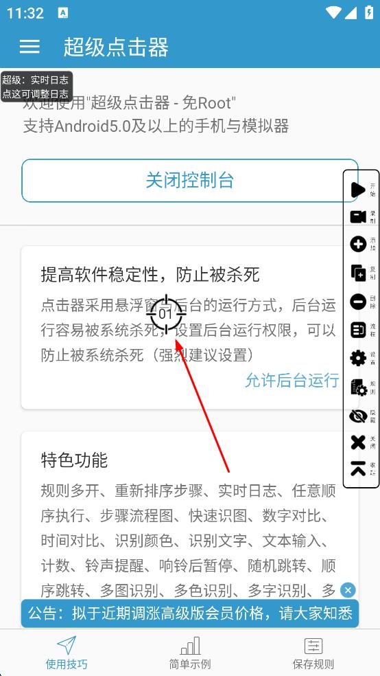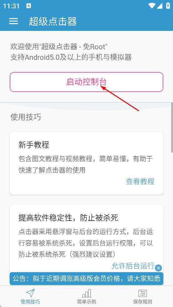 1、打開超級點擊器APP,點擊啟動控制臺。