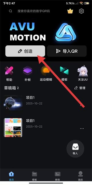 1.打開(kāi)美冊(cè)軟件,點(diǎn)擊創(chuàng)造按鈕進(jìn)入創(chuàng)作界面。