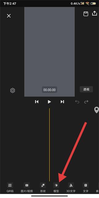 2.在創(chuàng)作界面,點(diǎn)擊底部的模型按鈕。