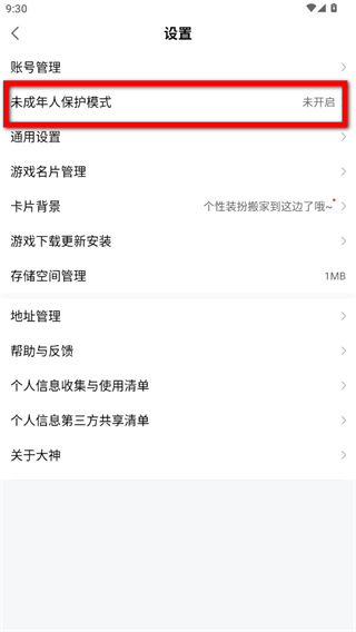 3、在設(shè)置界面,點擊未成年人保護(hù)模式選項,進(jìn)入對應(yīng)設(shè)置頁面。