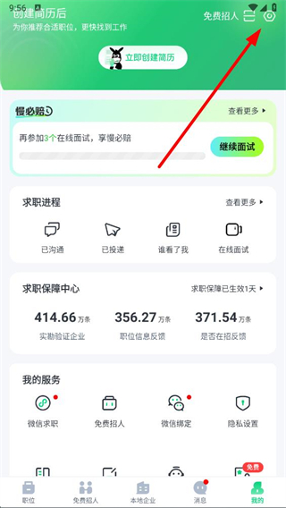 1、在趕集招聘app個人頁面點(diǎn)擊右上角設(shè)置圖標(biāo),進(jìn)入設(shè)置頁面。