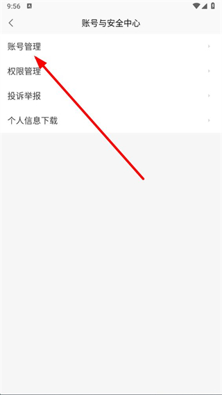 2、在賬號與安全中心的頁面中,點(diǎn)擊賬號管理的選項,進(jìn)入賬號與安全的詳情頁。