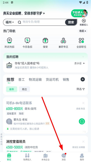 1、打開趕集招聘APP,點(diǎn)擊底部消息選項。