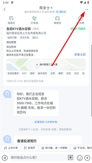 3、進(jìn)入對話頁面后,點(diǎn)擊右上角三個點(diǎn)圖標(biāo)。