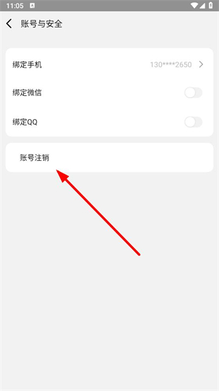 3、在賬號與安全頁面點擊賬號注銷選項,進入申請注銷賬號頁面。