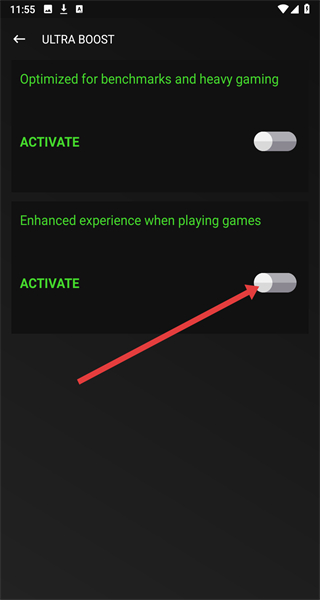 3、在ULTRA BOOST頁面,點(diǎn)擊“Enhanced experience when playing games”對應(yīng)的開關(guān)。