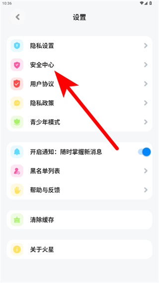 3、在更多設(shè)置頁面,點(diǎn)擊安全中心選項(xiàng)。