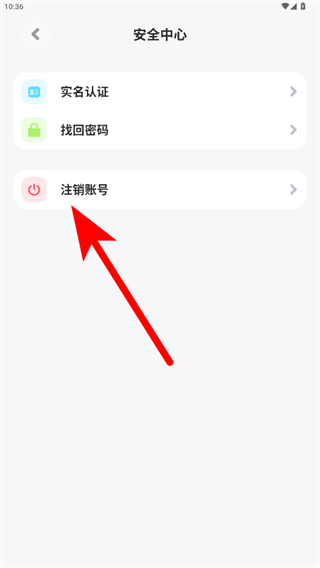 4、進(jìn)入安全中心頁面后,點(diǎn)擊注銷賬號選項(xiàng),按照提示完成賬號注銷操作。