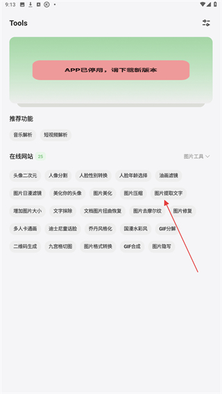1、啟動卡音APP,進入首頁內(nèi)點擊下方圖片提取文字的按鈕。
