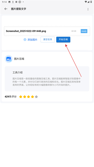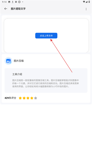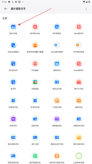 2、進入圖片提取文字的頁面內(nèi),點擊圖片壓縮的功能按鈕。