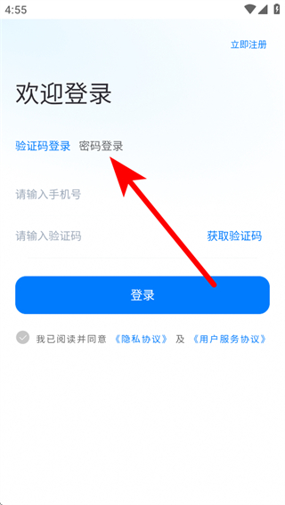 1、打開(kāi)正泰安能智慧云APP的登錄界面,點(diǎn)擊密碼登錄。