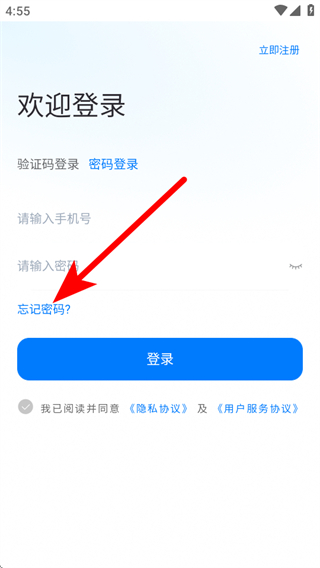 2、在密碼登錄頁(yè)面,點(diǎn)擊忘記密碼,進(jìn)入找回密碼頁(yè)面。