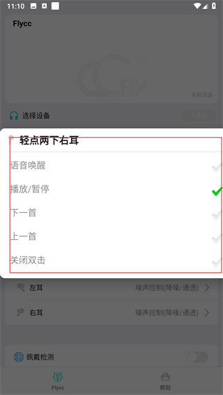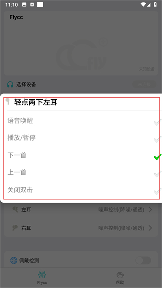 2、可選擇語(yǔ)音喚醒,播放/暫停,下一首,上一首,關(guān)閉雙擊等功能。
