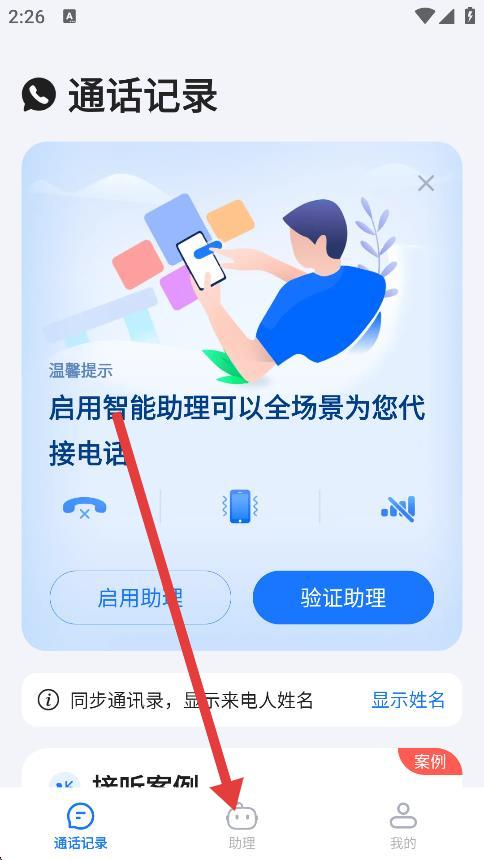 1、打開接聽寶App,在底部導航欄點擊助理選項。