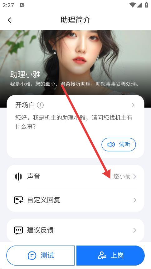 2、點擊你想要修改聲音的助理,進入助理簡介頁面。