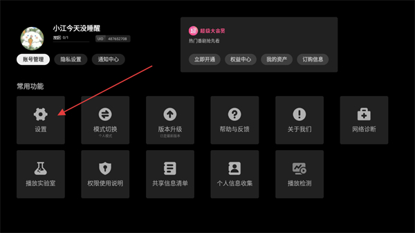 2、進入我的賬號的頁面內(nèi),在常用功能下點擊設(shè)置的按鈕。