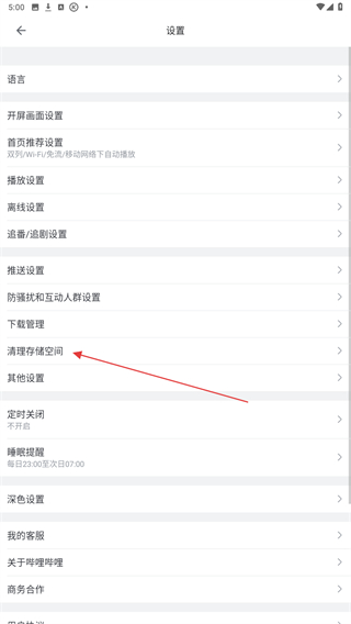 3、進入設(shè)置的界面內(nèi),向下拉動點擊清理存儲空間的按鈕。