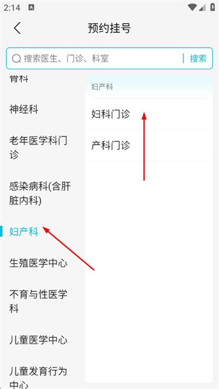 4、在預(yù)約掛號(hào)頁面,選擇就診科室。