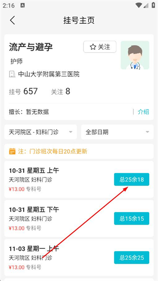 6、在掛號(hào)主頁,選擇就診日期和時(shí)段,點(diǎn)擊總余按鈕,即可完成掛號(hào)預(yù)約。