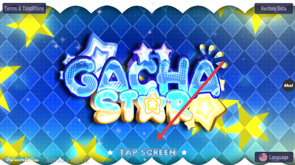1、進(jìn)入Gacha-Star游戲啟動(dòng)頁(yè),點(diǎn)擊中間TAP-SCREEN”區(qū)域,進(jìn)入角色編輯界面,開(kāi)啟個(gè)性化裝扮之旅。