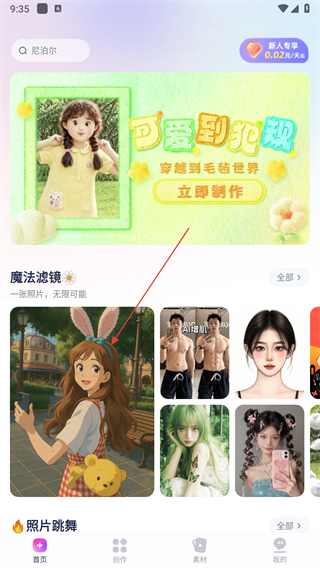 1、打開剪同款應用,在首頁選擇喜歡的濾鏡效果。