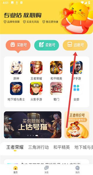 估號貓官方版是非常專業(yè)的游戲交易平臺,用戶下載app之后就可以隨時隨地查看自己的游戲賬號市場價值,準(zhǔn)確的估值能夠為大家交易賬號提供參考,多種類型游戲滿足不同玩家的需求,還有24小時客服在線服務(wù),趕緊下載估號貓app體驗吧。