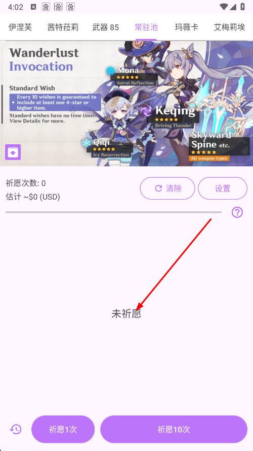 2、點擊后,祈愿次數(shù)會歸零,抽卡結果列表也會清空,回到未祈愿狀態(tài)。