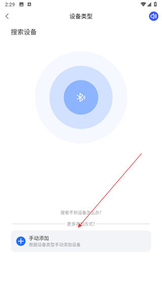2、在設(shè)備類型頁面,找到并點(diǎn)擊手動添加選項(xiàng)。