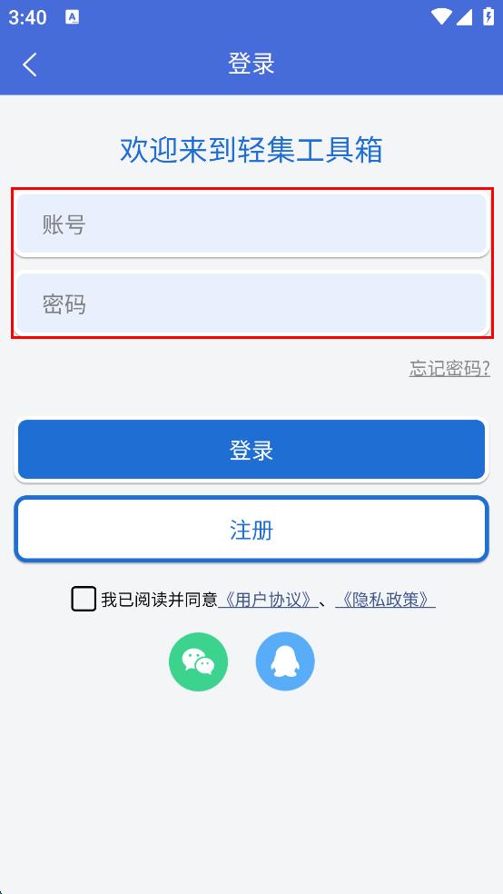 4、點擊“登錄”按鈕完成輕集工具箱的登錄操作。