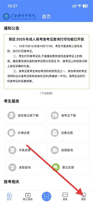 1、打開廣西成考,點擊底部導(dǎo)航欄中的我的選項。