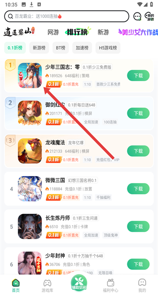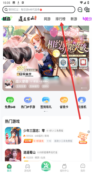 2、在進入到應用首頁中時,可以點擊上方排行榜選項,查看游戲排行情況。
