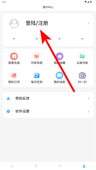 2、在用戶(hù)中心頁(yè)面點(diǎn)擊登陸/注冊(cè),進(jìn)入用戶(hù)登陸頁(yè)面。