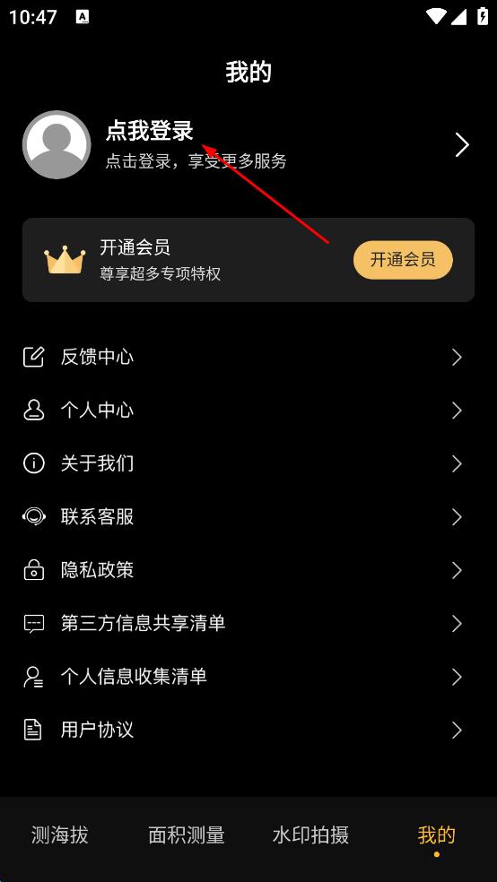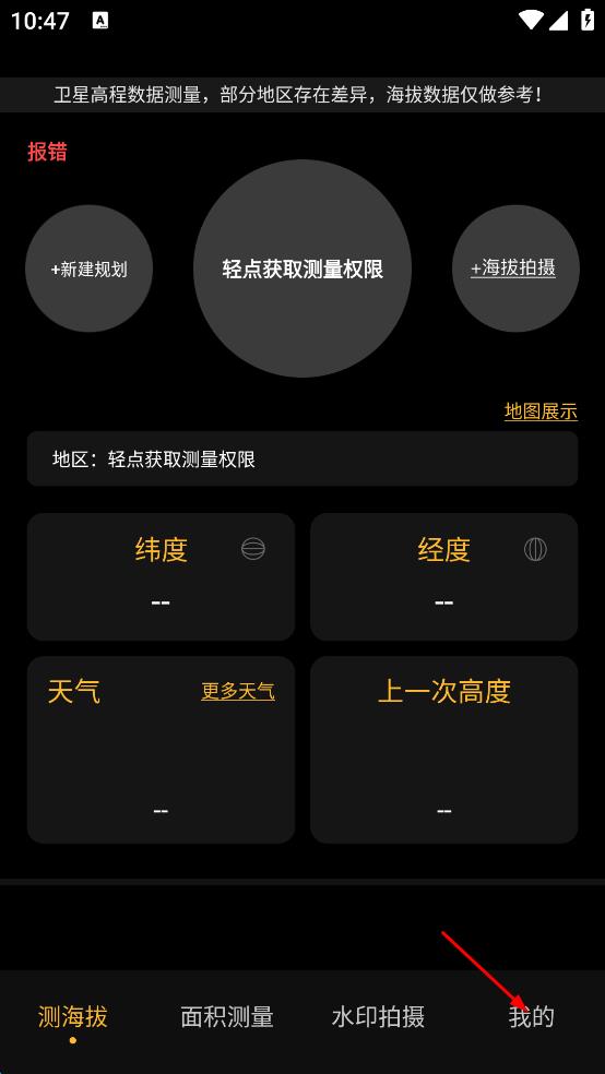 1、打開(kāi)海拔測(cè)量?jī)x軟件,點(diǎn)擊右下角我的,進(jìn)入我的頁(yè)面。