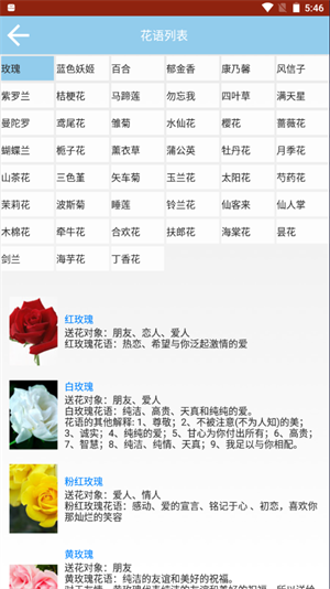 3、學習各種鮮花的花語,記錄內(nèi)容也很全面。